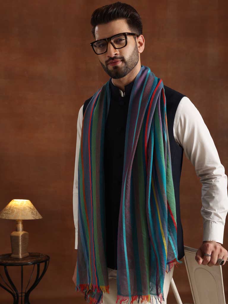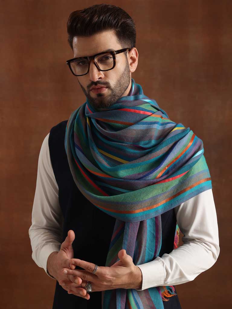 Stripes Wool Silk Scarf Unisex